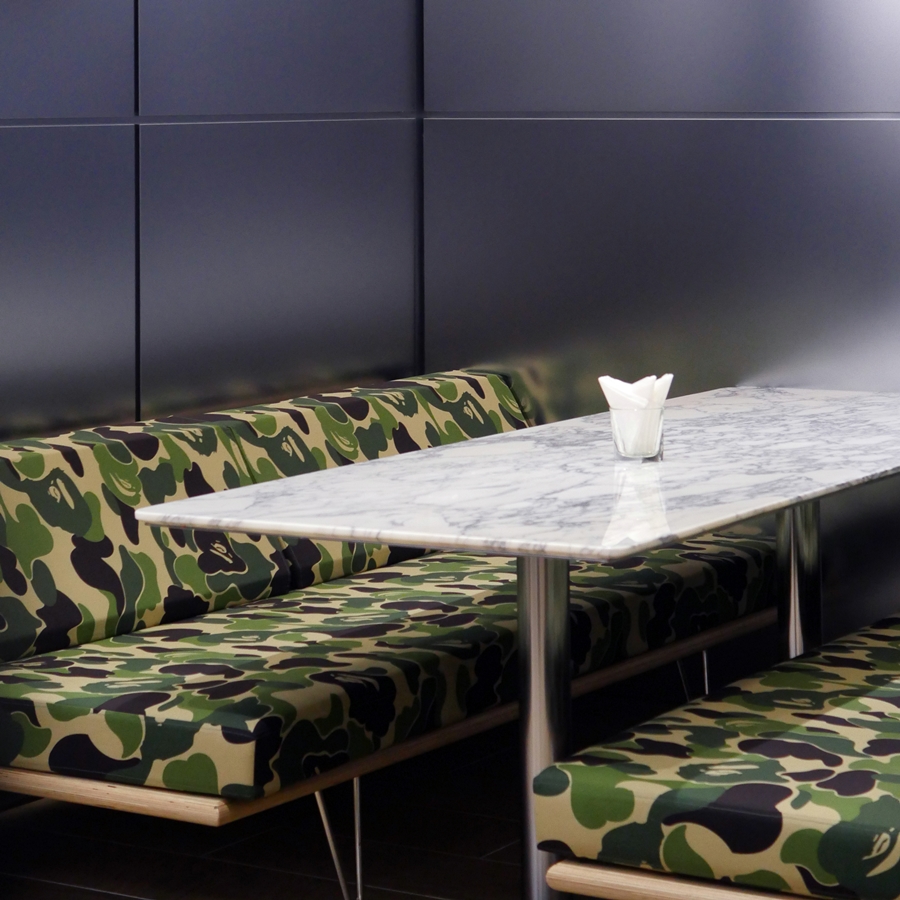店內擺設了兩張 BAPE® 迷彩沙發供客人歇息 / 試鞋,超級帥!