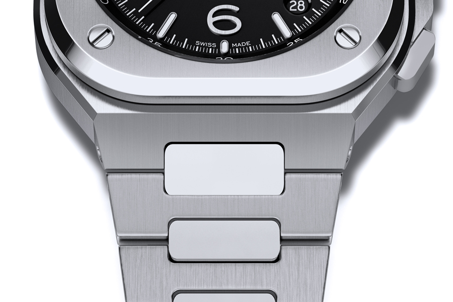 而「BR05」系列其中一個特別之處就是其錶殼與錶鍊是一氣呵成的: