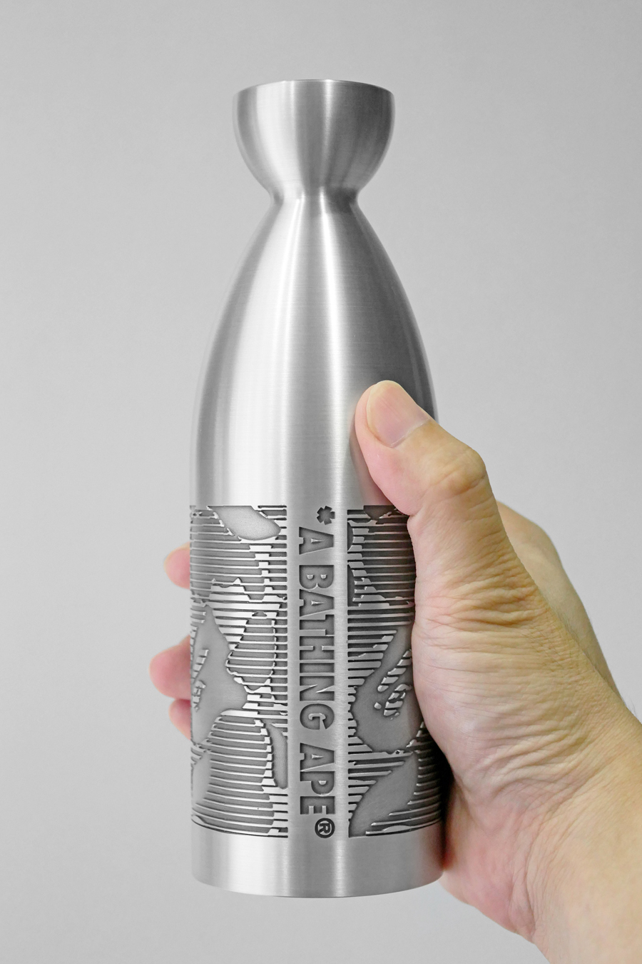 這壺身刻鍍了一行 *A BATHING APE®︎ 的字樣,而圍繞著它的這是線條與迷彩圖案,實在太精緻啦!
