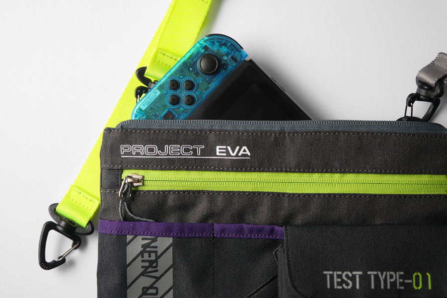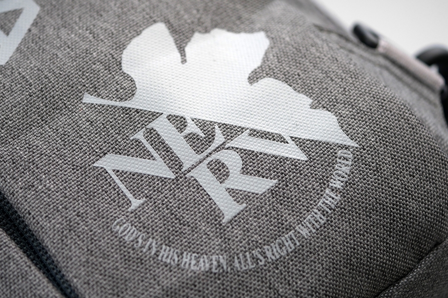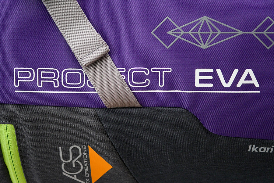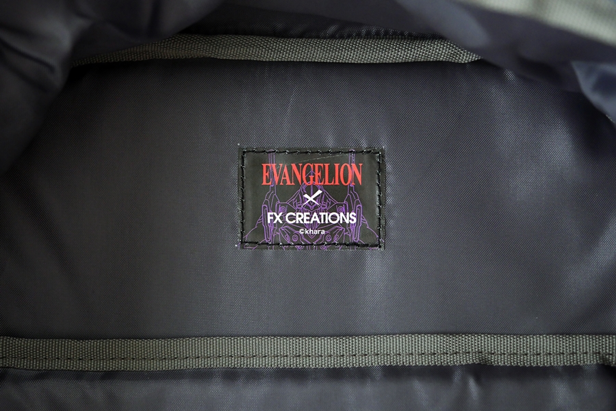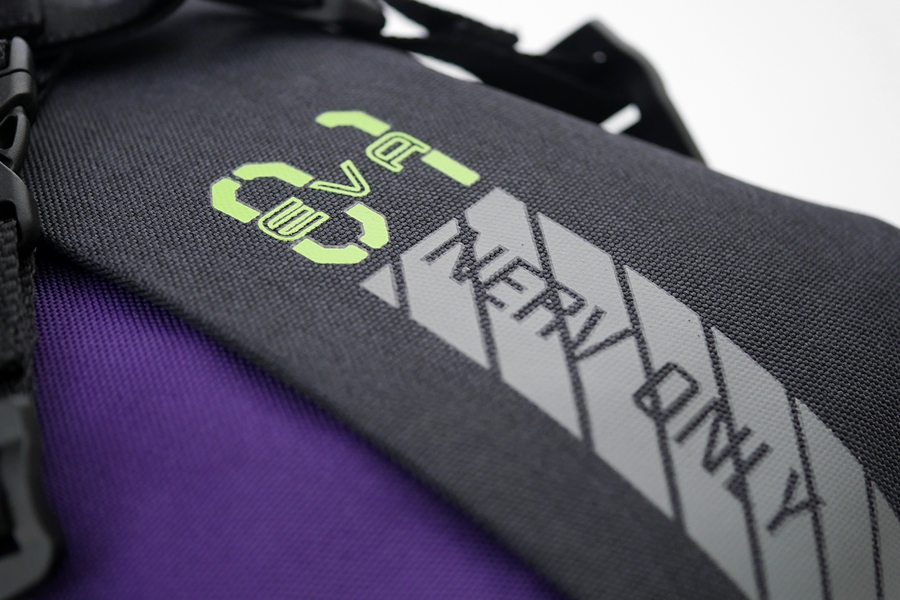 背包的右側印有直排的一行「PROJECT EVA」字樣 ( 如下圖 ),左側則有「EVANGELION」字樣:
