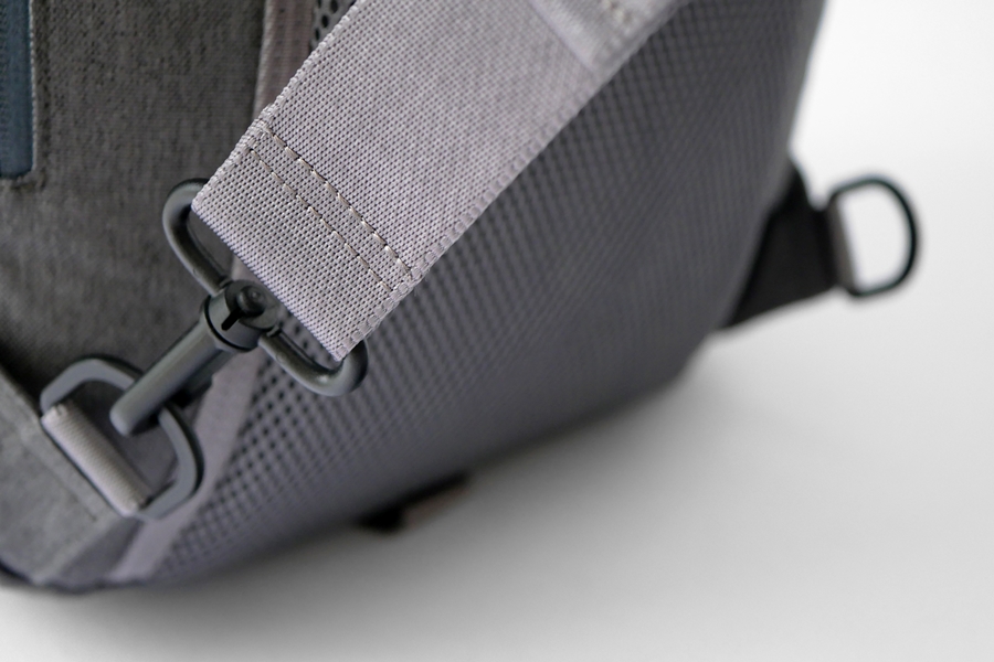背包下方的左右兩側都設有扣子方便用家能替換肩帶的方向: