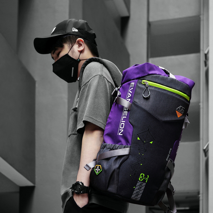 哥絕對稱不上是『EVANGELION』的粉絲 ( 只是覺得「初號機」的模型很酷,看過這作品的解說影片而已 ),所以對這背包原本是沒什麼期望的,直到收到實物後立刻愛上了!背包的紫色搭配熒光綠細節點綴很吸睛,它的體積很大,在市區背出門肯定會吸引到別人的目光,或許會被朋友嘲笑你是不是要去登山或者當背包客,哈哈
