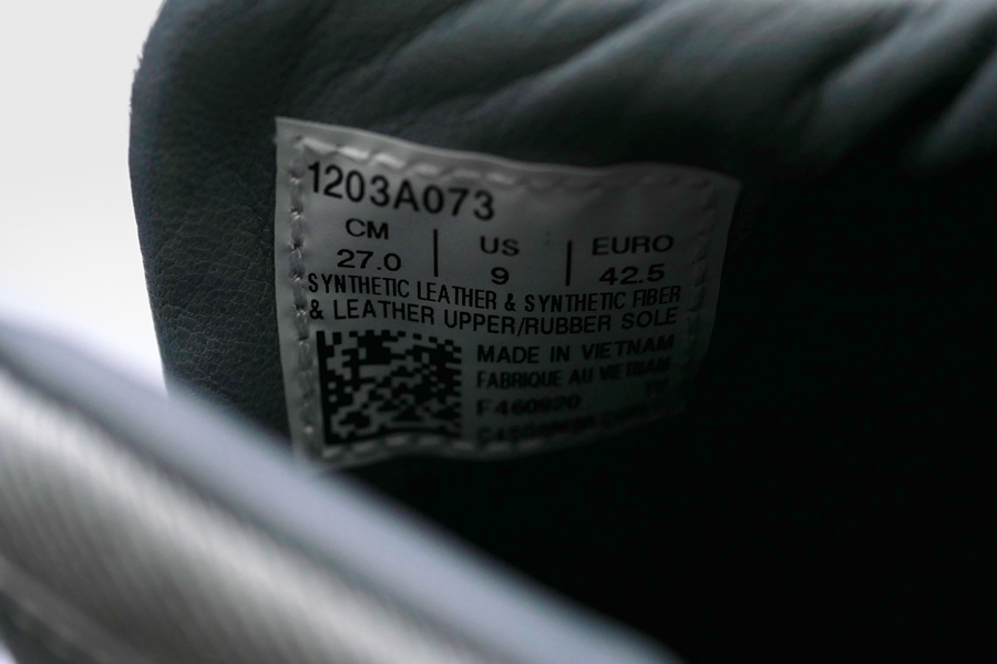 從鞋盒側的鞋貼可以看到這雙鞋子的全名為「GEL-LYTE III KUALA LUMPUR TWIN TOWERS」,鞋子的顏色為 PIEDMONT GREY / SHAMROCK GREEN,鞋型編號「1203A073-020」。
