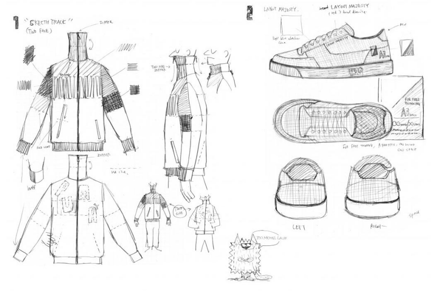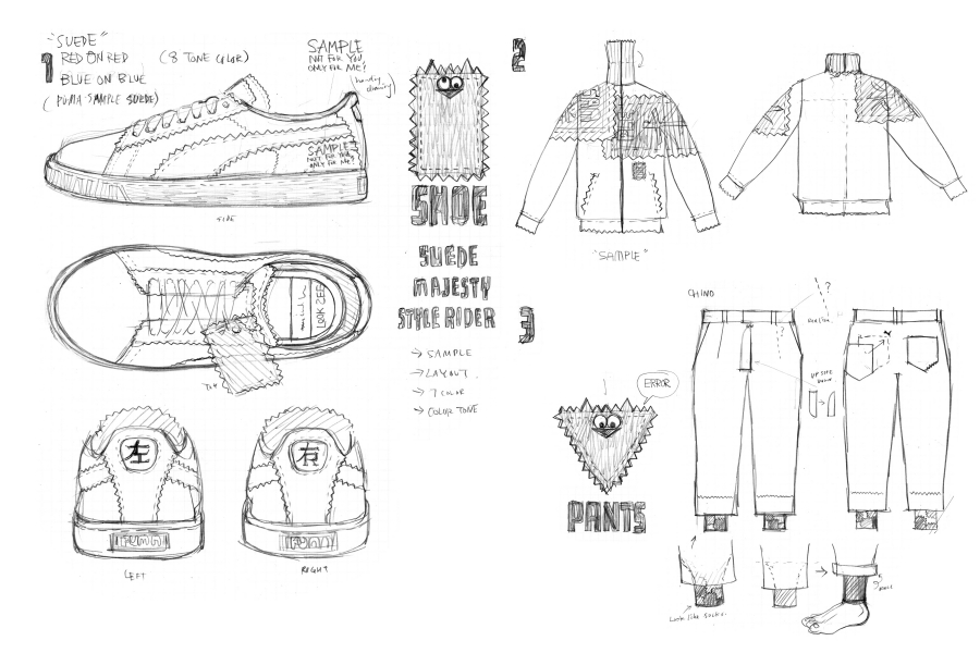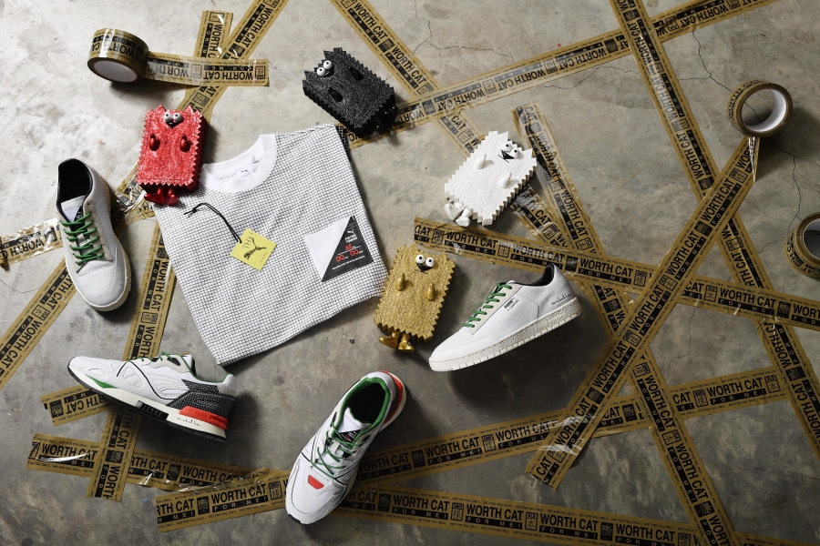 在去年 ( 2020 ) 的 12 月,PUMA 與被譽為「FIGURE 教父」的香港藝術家 MICHAEL LAU 發布 / 發行了它們第三度攜手合作的聯名系列,今次同樣延續了之前的「樣品」概念,直接把「樣品」的草稿實體化!