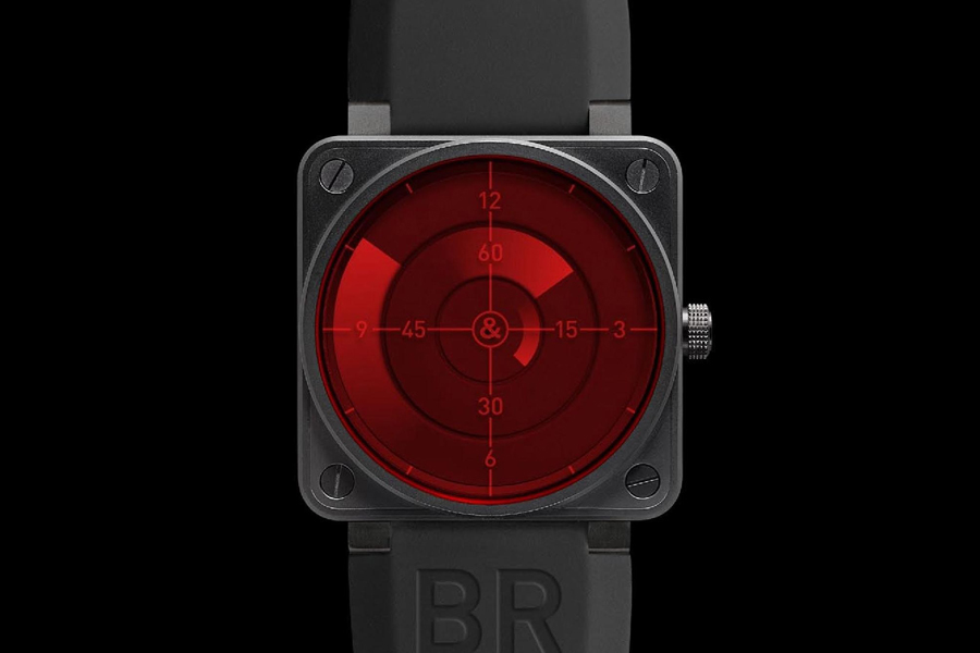 BR01 RED RADAR」顧名思義就是以飛機上雷達的儀表為設計靈感,它除了紅色的鏡面讓人眼前一亮外,它顯示時間的方式也相當的有趣,就真的好像雷達在掃描的感覺!