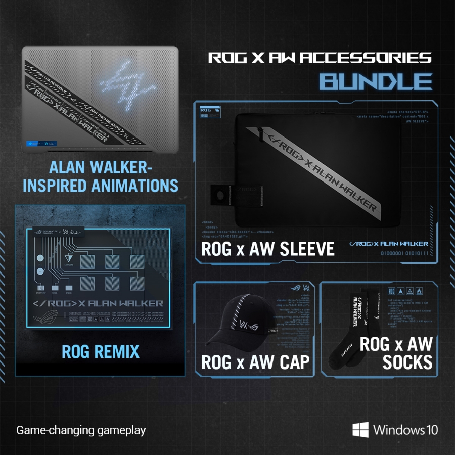 今次這台 ASUS ROG × ALAN WALKER「ZEPHYRUS G14 AW SE」在本地的定價為 MYR 7999,而付這價格不僅是獲得一台聯名筆電,您也可以獲得一台「ROG REMIX」混音器,一頂 ASUS ROG × ALAN WALKER 聯名帽子,一雙聯名長襪,以及一個電腦包。