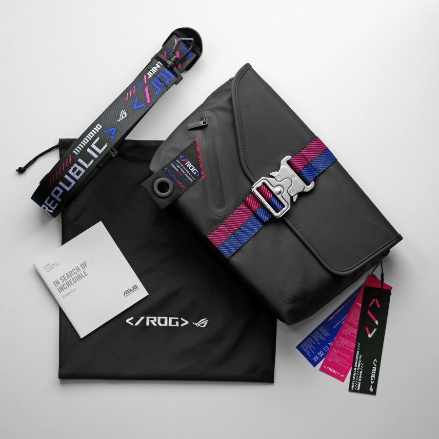 即日起只要??> 官方店上入手n>」即可獲得 ASUS ROG 最新的時尚配件「SLASH」系列的斜背包一個!