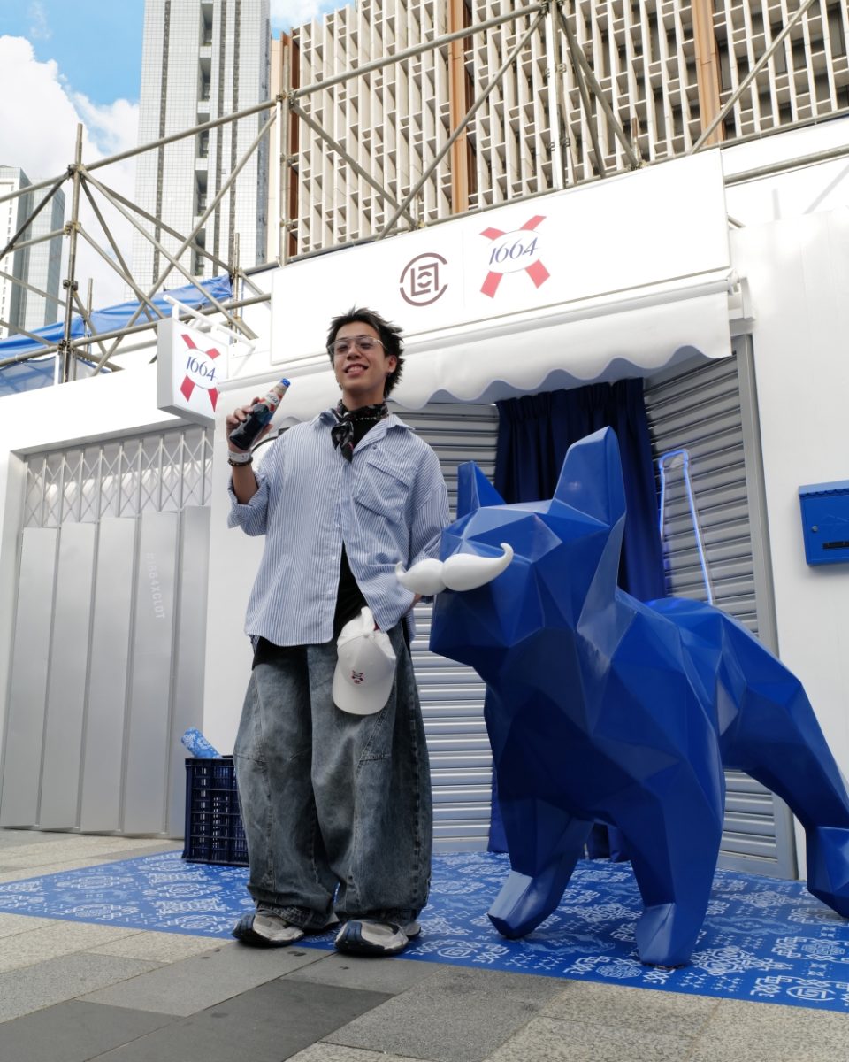 1664 不單單只是包下「 TIPSIP 」作為 AFTER PARTY 場地,而是以今次聯名主題 TAKE OVER,藍絲綢圖騰鋪滿每個角落,帥到忍不住拍個幾張!