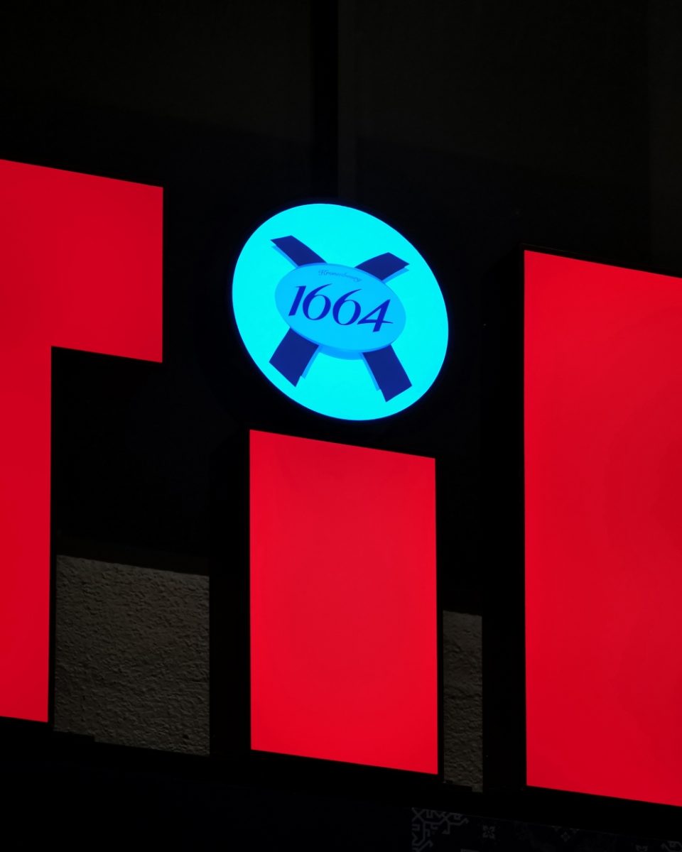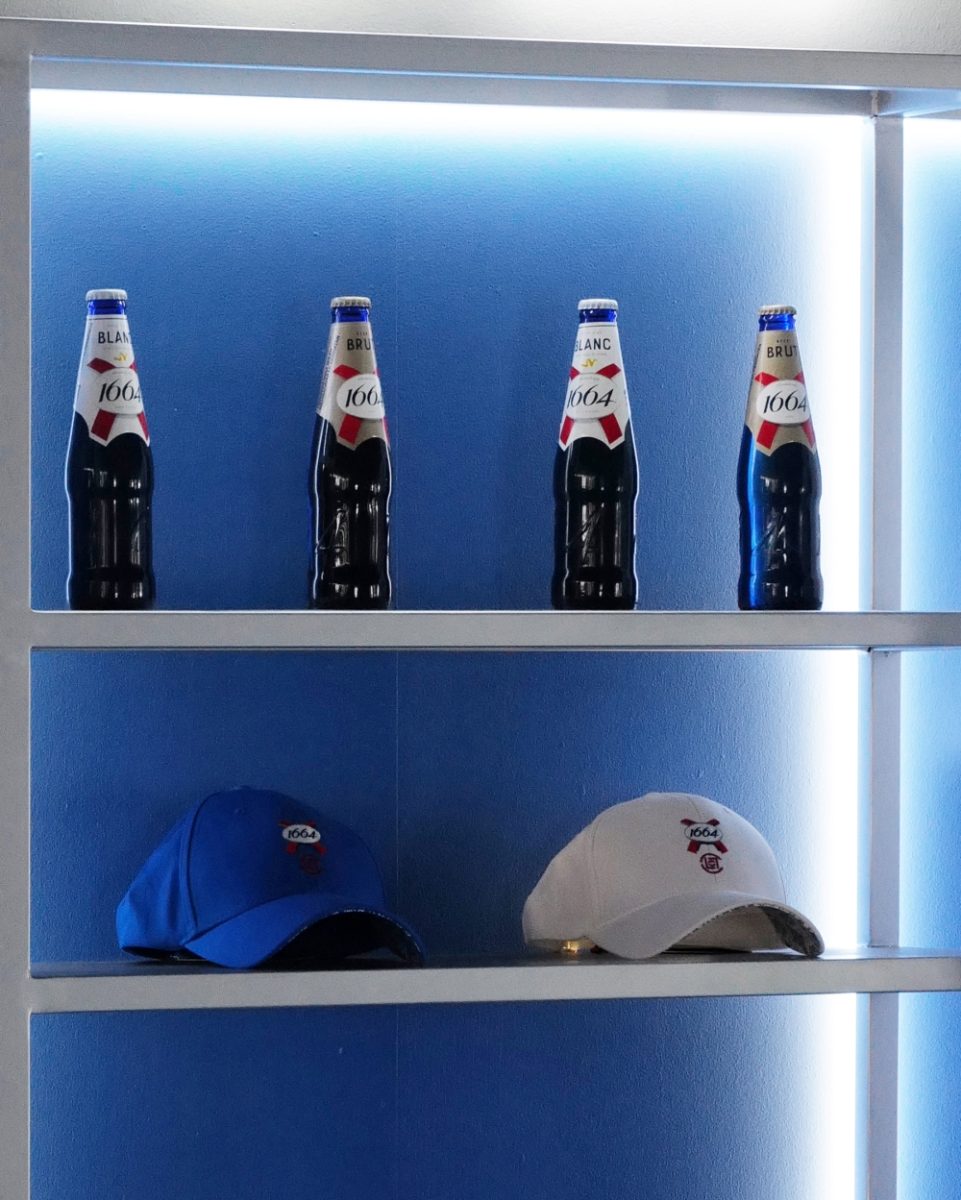 一踏入店內就會被一面滿滿的 1664 啤酒牆給吸引,讓人忍不住想先拍照打卡。